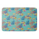 Beautiful bath mat with colourful tropical coral and fish watercolor pattern on aqua background.