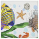 The theme of this print is life under the sea with colourful tropical fish, seaweed, starfish, sand dollars and seahorses. Great for use in draperies, upholstery, cushions or the bathroom. Change the background colour to match your decor.