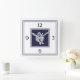 Tropical fish square wall clock in classic borders. Navy blue and white.