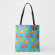 A colourful design of vintage cartoon-style tropical fish swimming through a bright blue sea. The three fishes motif repeats to create a whole school or even aquarium! Add your own initials to personalise this design and they will appear in the upper corner of the front side.