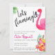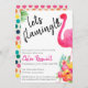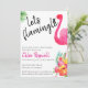 Watercolor flamingo and vibrant tropical floral arrangement with summer dot pattern backing, baby shower invitation. Personalise text, font style, colour and size.