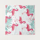 Colourful flamingo and leafs dance in rhythm. Summer's tropical embrace.