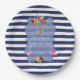 Tropical Flamingo Floral Luau Navy Stripes Wedding Paper Plate