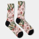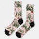 These colourful tropical pink flamingo socks feature a floral pattern of hand-drawn pink flamingos, hibiscus and jasmine flowers, pineapples, banana leaves and tropical drinks, all against an elegant blush pink background.
