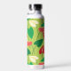 The bottle looks even better in real life. The ice cubes I put in lasts all day! I have my bottle with me all the time. It's summer and having something cold to drink feels amazing. With this bottle I always have something super cold. I have only tried the hot drink once and it lasted a long time as well. The color blue is a navy blue and the white printed on it is vibrant. It printed perfectly. I love my personalized smile water bottle.