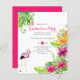 This modern tropical island, Graduation partyr invitation is the inspiration of LeahG featuring her signature date 'dot' which offers a descreet break from the normal graduation party invitation typography layouts. The colours here are fuchsia (deep pink) ginger (orange) and green. There are text template fields both sides ensuring you can add extra details including rsvp, gift registry, directions and more. This will save you money and postage as it reduces the number of elements you need to include with your graduation invitation. NOTE: This size and paper type is part of the budget range of graduation invitations and as such does not include envelopes. They can be ordered inexpensively from another source or you can access this same design here via a different card / paper and size type that does include them. See the transfer options featured on this product page. Also note that here 1 sheet represents 1 graduation party invitation.