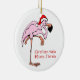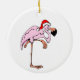Cute round ornament with cartoon artwork of a pink flamingo, with a Santa Hat on. Text reads, Christmas 2010, Miami, Florida and is totally customisable to read what ever you want. Fun keepsake ornament and makes a nice gift too.