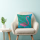 Tropical Flamingo & Palm Leaves on Blue Sky Cushion