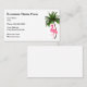 Tropical business cards in a simple design with a cute pink flamingo and palm tree alongside a simple layout you can customise online. Created for themes related to local travel, real estate, Florida, or fashion.