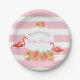 Tropical Flamingo Pink Stripe Baby Shower Paper Plate