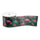 Add a bold tropical touch to your gifts and décor with this flamingo floral satin ribbon, featuring vivid pink flamingos, lush greenery, and vibrant island blooms set against a rich dark background. The smooth satin finish gives it a soft sheen that instantly elevates bows, wrapped presents, and creative projects with a fun yet elegant feel. Perfect for tropical weddings, summer parties, destination celebrations, and DIY crafting, this ribbon brings playful color and exotic charm to everything from gift wrapping and floral arrangements to wreaths, favors, and handmade décor. The eye-catching pattern makes it especially beautiful for statement bows and layered ribbon accents.