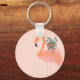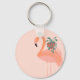 Tropical Flamingo with Potted Plant Hand Drawn Key Ring