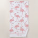 A stylish beach towel, this design features tropical pink flamingos on a white background. At the bottom is a place to customise your name.
