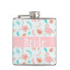 Using a beautiful blue background with pink flamingos, there is also pink and blue flowers and feathers that decorates this design. In the middle "Bride" is written on a pink background. Purchase your bridal flask today!