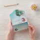 Parrot's comes to life hidden behind monstera leaves peeking through the lush steamy flowering foliage all in one wedding invite