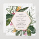 Tropical baby shower invitation featuring a watercolor wreath of lush tropical greenery and hibiscus flowers. Personalise with your information or click "Click to customise further" to edit font styles, size and colours.