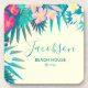 Tropical Floral Beach House Family Name with Year established Summer Vacation Coaster