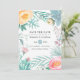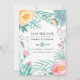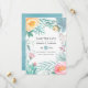 Mint, pink and yellow exotic summertime wedding invite featuring peonies, eucalyptus, rosehips, succulent, lisianthus, menthol leaves and succulents. All text fields and graphics are totally customisable.