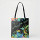This colourful tropical customisable Mother of the Bride tote bag is perfect thank you gift for the mother of the girl having a Hawaiian beach wedding, Florida beach wedding, or Caribbean beach wedding. Watercolor images of hibiscus, exotic leaves, bird of paradise, tropical florals, pineapples and palm trees on a black background grace the tote bag on the front and back. This tote bag features blues, greens, pinks, oranges, yellows and reds. The bag is fully personalizable with your own custom text or background colour. Personalise with her name on the back of the tote bag. See my complete collection "Tropical Floral Black Wedding" for more items you will need for your exotic wedding!