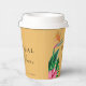 Design features an watercolor elegant bouquet of classic beach watercolor greenery and flowers, including blush pink hibiscus, orange and blue bird of paradise, green greenery and dark green palm leaf.