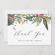Thank you card featuring tropical florals and greenery. Personalise with your information or click "Click to customise further" to edit font styles, size and colours.
