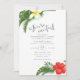 Announce any event with this unique wedding invitation template featuring lush tropical foliage and colorful floral accents. Reverse pattern of light green fern leaves is set on the background color of your choice. The eye-catching 'you're invited' script text is optional and can be deleted to use the template for other events. Use the provided template to customize your event details. Search ID475 to see other products with this design including matching RSVP cards and more.