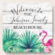 Tropical Floral Family Name Beach House welcome Coaster