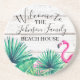 Tropical Floral Family Name Beach House Welcome Coaster
