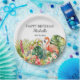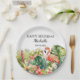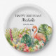 Tropical Floral Flamingo Happy Birthday Name Paper Plate