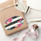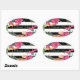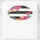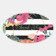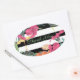 Tropical Floral Flowers Leaves Black White Stripes Oval Sticker