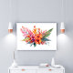 Beautiful tropical flowers in pinks, peach, yellow and orange with greenery on this Wall art poster. Many sizes to choose from.