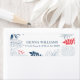 Tropical flowers and leave in navy-blue and white with coral-red accents, customisable template.
