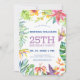 Colourful tropical flowers and leaves watercolors frame with a white background. Customisable modern Birthday Party invitation.