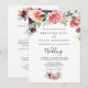 This tropical floral front and back wedding invitation is perfect for an elegant wedding. The design features illustrated white, pink, blush, burgundy and purple elegant flowers arranged into beautiful bouquets with green foliage.