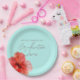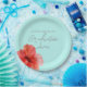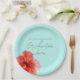 Beautiful watercolor floral tropical luau party plate with a red hibiscus.
