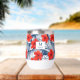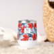 Super fun coffee / wine tumbler featuring a red, white and blue, tropical Floral Hibiscus pattern. Add a monogram, name or custom text to personalise this one of a kind gift. Perfect for tropical weddings, Mother's Day, tropical beach vacations, birthday gifts and more.