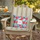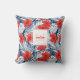 Super cute double-sided outdoor pillow featuring a red, white, blue floral tropical botanical pattern accented with your monogrammed initial and name. Perfect for a porch, patio, pool area, beach house or garden shed.