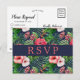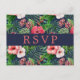 Tropical Floral Hibiscus Navy Wedding RSVP Postcard