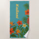 Tropical Floral Hibiscus Palm Personalised Name Beach Towel