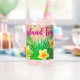 How fun is this? Tropical greenery and flowers on a woven rattan look background! You'd swear you were somewhere on a south seas island swaying in a hammock between two palm trees. Or maybe just in your own backyard...wherever you are, this can shaped glass is a summer must.