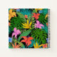 Lovely floral jungle image with vibrant colours. Personalise with your/recipient initial in a centre, square frame.
