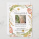 Tropical floral watercolor frame in soft pastels Life Celebration photo invitation. Invite friends and family to a life celebration or memorial service to honour your deceased loved one. Feminine design for grandmother, mother, sister, aunt, daughter or female cousin.