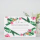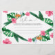 Tropical Palms Watercolor Bridal shower invitation. Design features an watercolor elegant bouquet of classic beach watercolor greenery and flowers, including blush pink hibiscus, orange and blue bird of paradise, green greenery and dark green palm leaf.