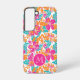 Designed with a vibrant tropical-style flower pattern in pink, orange, and teal, this case features a custom name band for a playful, stylish touch.