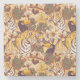 Tropical Floral Pattern With Tiger Stone Coaster