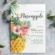 This beautiful invitation features the gorgeous colors of pineapple and colorful tropical flowers.