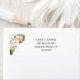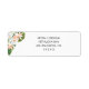 This return address label features a topical floral image on the top left hand corner with pink and white flowers.