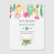 Colourful and whimsical floral tropical beach wedding magnetic save the date card customisable to your event specifics.