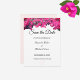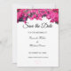 Elegant magenta red floral header on white Save the Date Wedding Invitation Card. The back side has two pink heart silhouettes on gold rose background. Bougainvilleas are welcoming and beautiful!