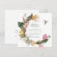 Welcome to the world of the tropics with our Tropical Floral Wreath Bridal Shower invitation! This stunning invite features a colourful tropical flower wreath with a cute hummingbird that is sure to catch your guests' eyes. The wreath is adorned with tropical flowers such as bird of paradise, anthurium, hibiscus, ginger and orchid that will transport you to a paradise island.